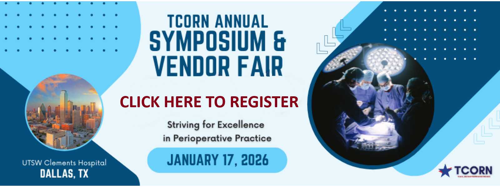 The mission of TCORN is to establish and maintain communication among Texas Perioperative nurses and National AORN regarding legislative and professional issues impacting perioperative nursing at the state and national levels.